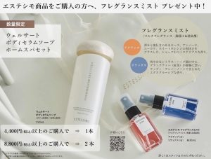 ①エステシモ商品ご購入で、香りが選べるフレグランスミストをプレゼント🎁